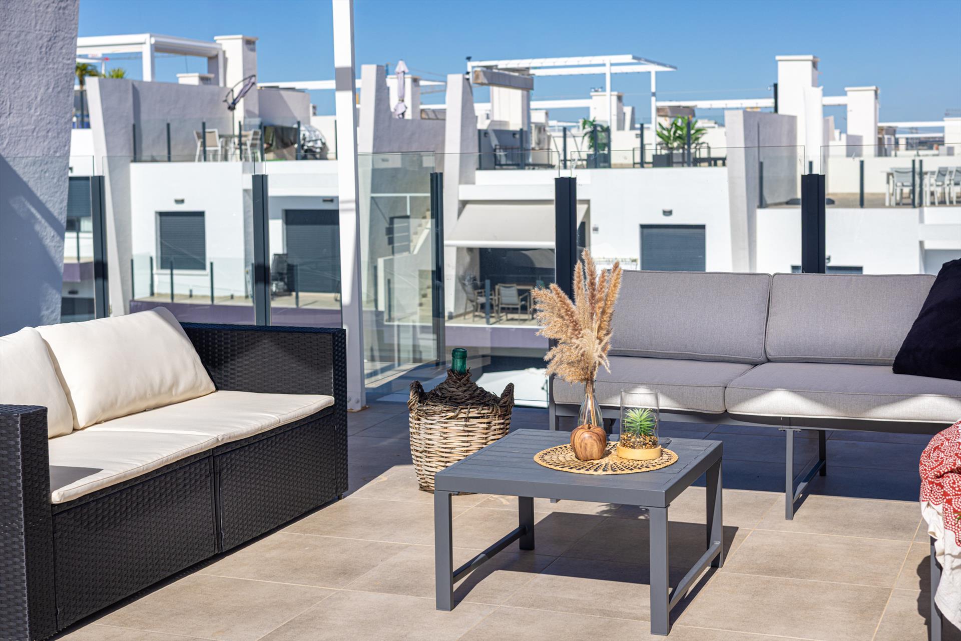 Maravilloso y cómodo apartamento en San Miguel de Salinas, Costa Blanca, España, con piscina comunitaria para 4 personas. El apartamento se encuentra cerca de restaurantes, bares, tiendas y supermercados.