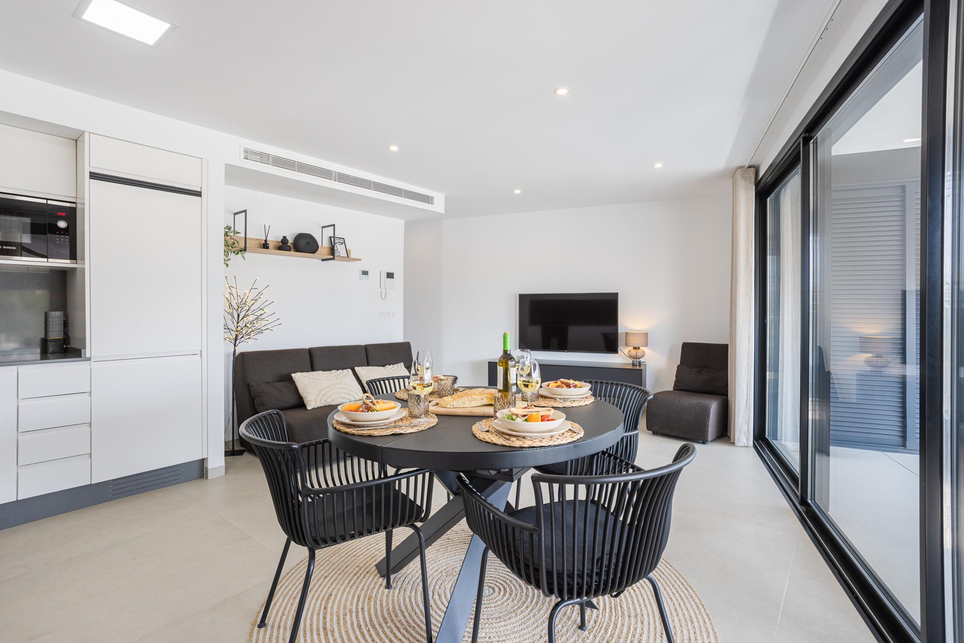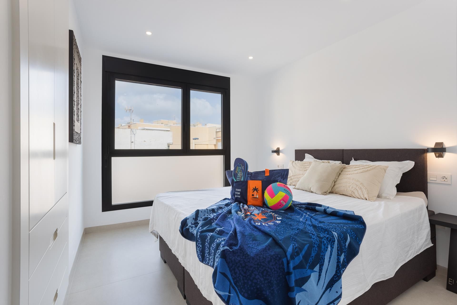 Maravilloso y lujoso apartamento en San Pedro del Pinatar, Costa Cálida, España, para 6 personas. El apartamento está situado en un complejo vacacional, cerca de restaurantes y bares, tiendas y supermercados, y a 100 m de la playa. El apartamento cuenta con 3 dormitorios y 2 baños. El alojamiento ofrece privacidad, vistas maravillosas al mar y al puerto, y hermosas vistas a la playa y a la calle. Su comodidad y la proximidad a la playa, las instalaciones comerciales, las actividades deportivas y los lugares de ocio hacen de este un apartamento ideal para pasar sus vacaciones en España con familia o amigos.