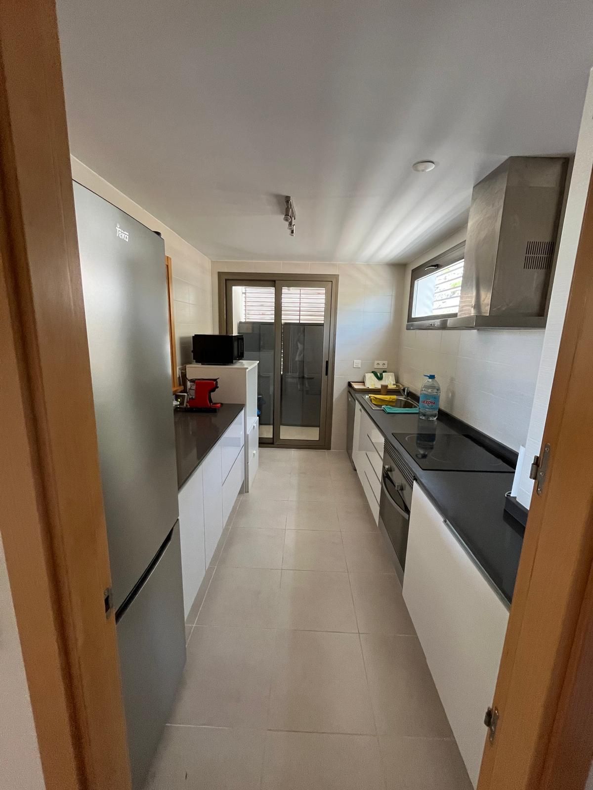 • kitchen with electric hob, electric oven, dishwasher, refrigerator, coffee machine, electric kettle and juicer