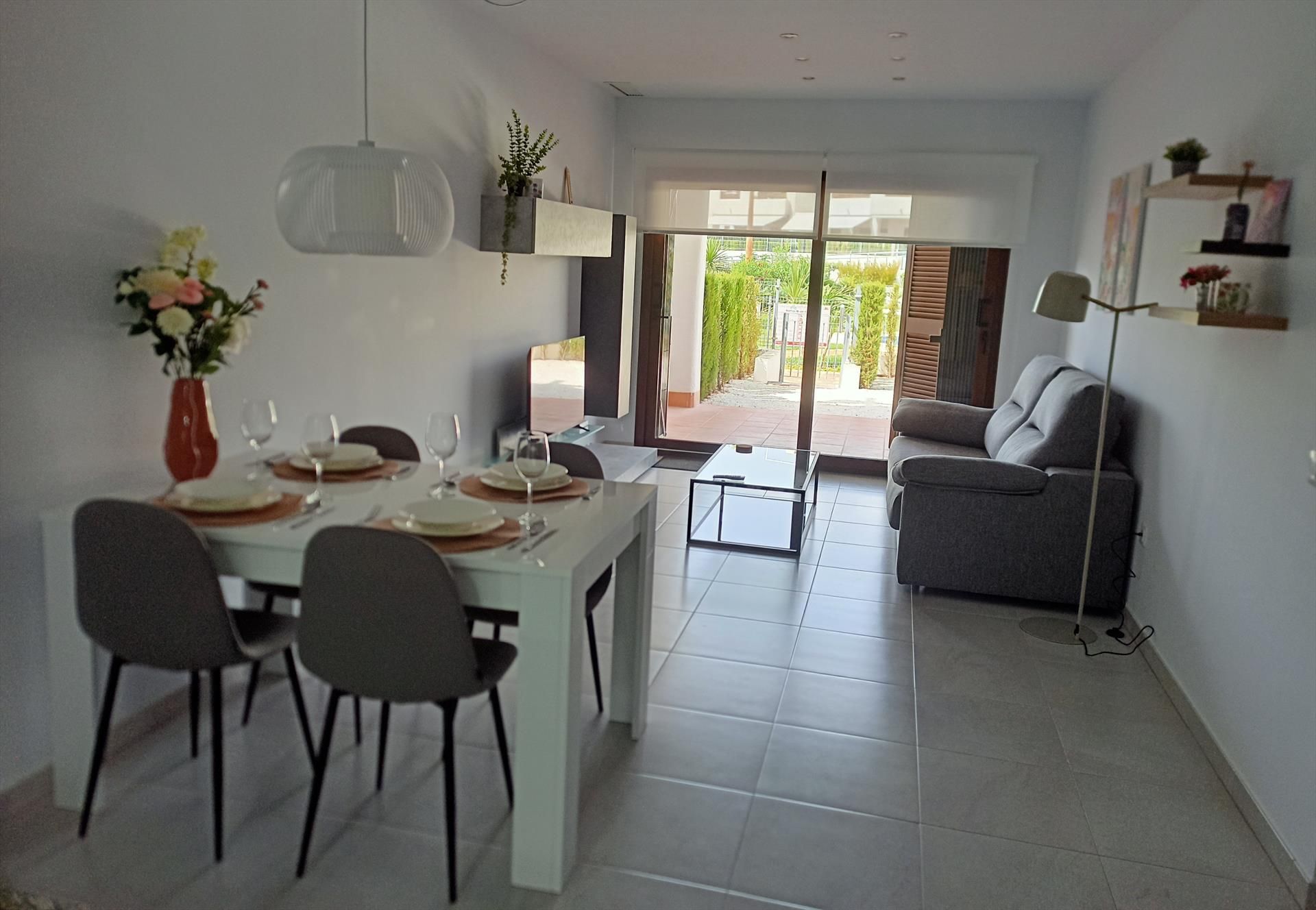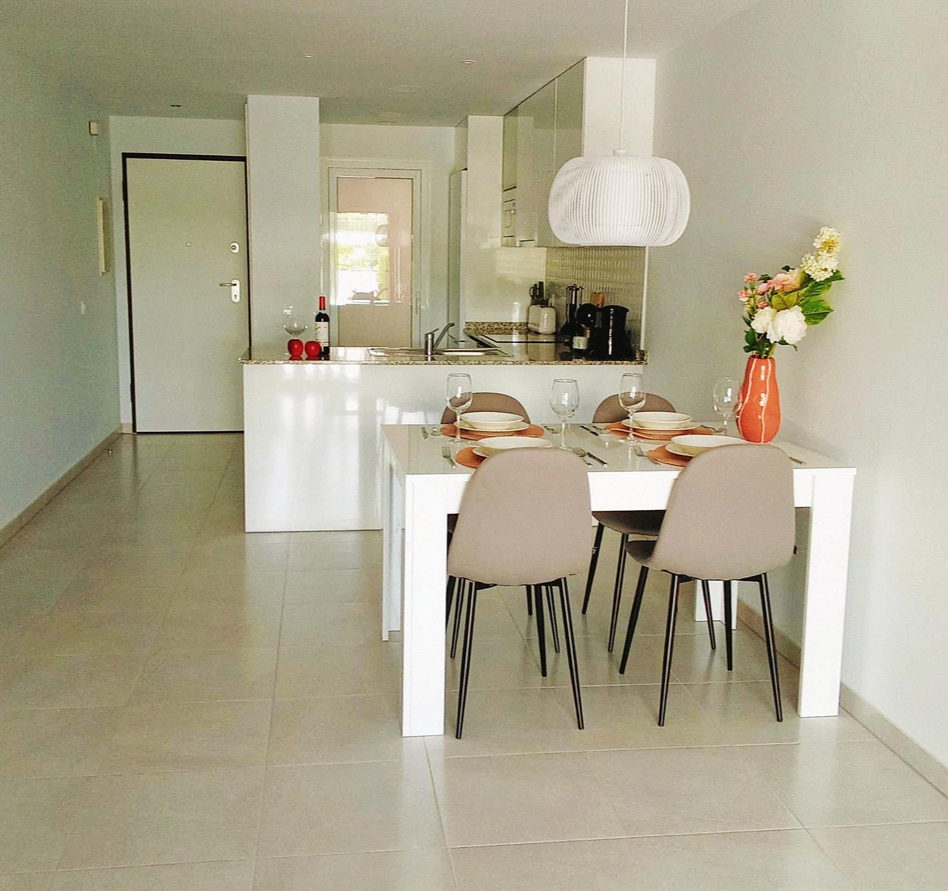 The apartment has 2 bedrooms and 1 bathroom. The accommodation offers a garden with gravel, a lawned communal garden with trees and wonderful views of the garden. Its comfort and the proximity of the beach, places to shop, sports activities, entertainment facilities, sights and culture make this a fine apartment to spend your holidays in Spain with family or friends.