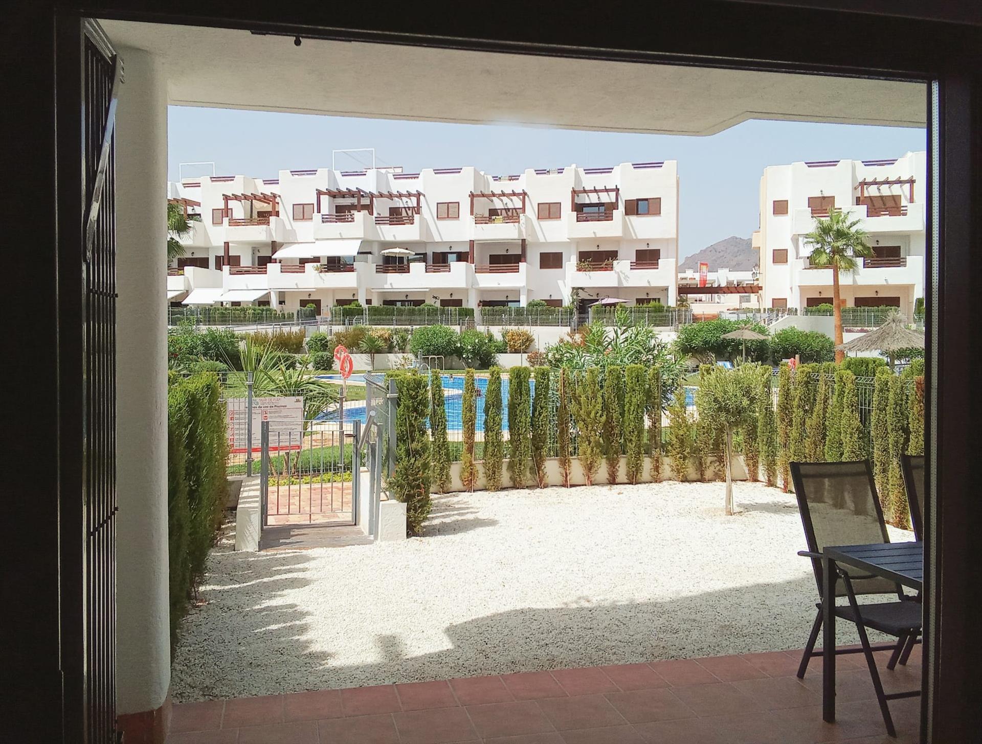 Modern and cheerful apartment with communal pool in Saint John of the Terreros, Andalusia, Spain for 5 persons. The apartment is situated in a beach resort, in a residential and mountainous beach area, close to supermarkets and 500 m from the beach.