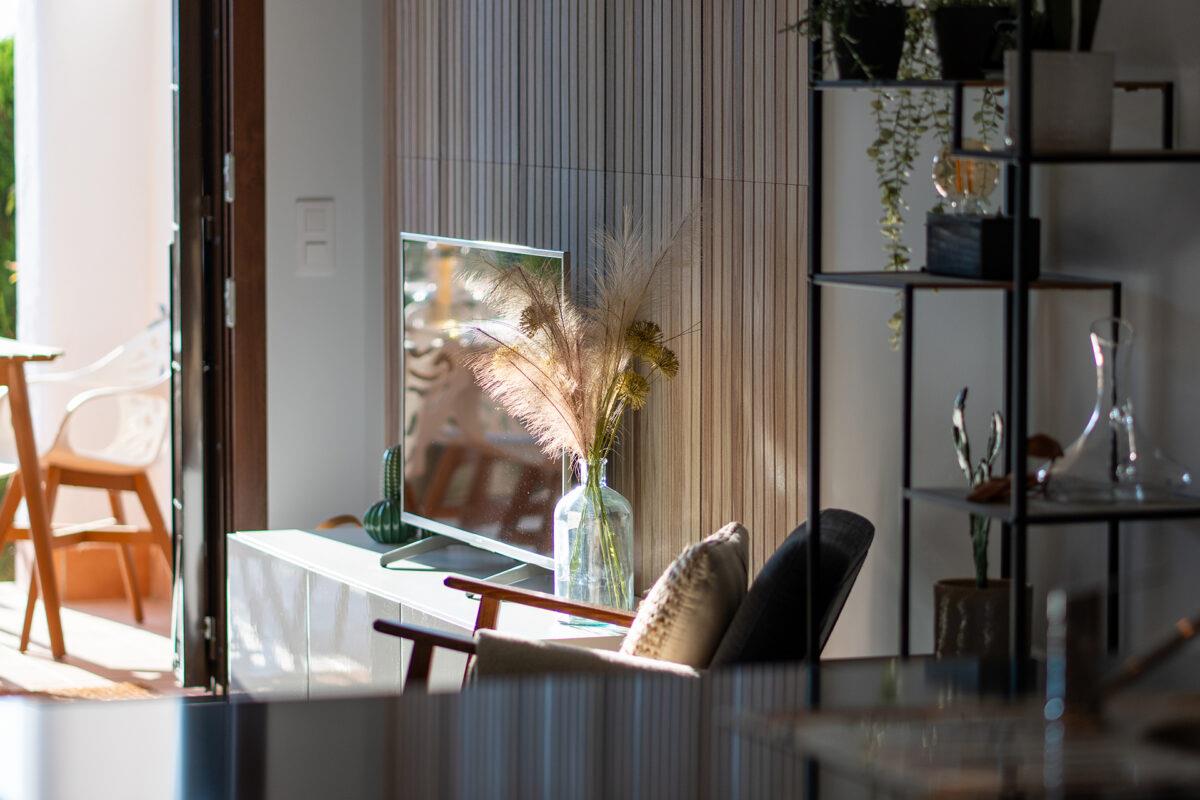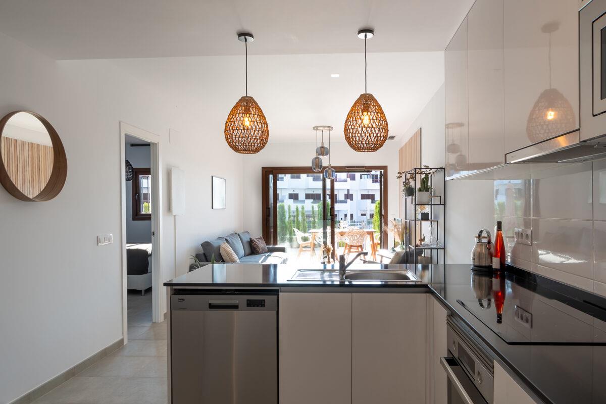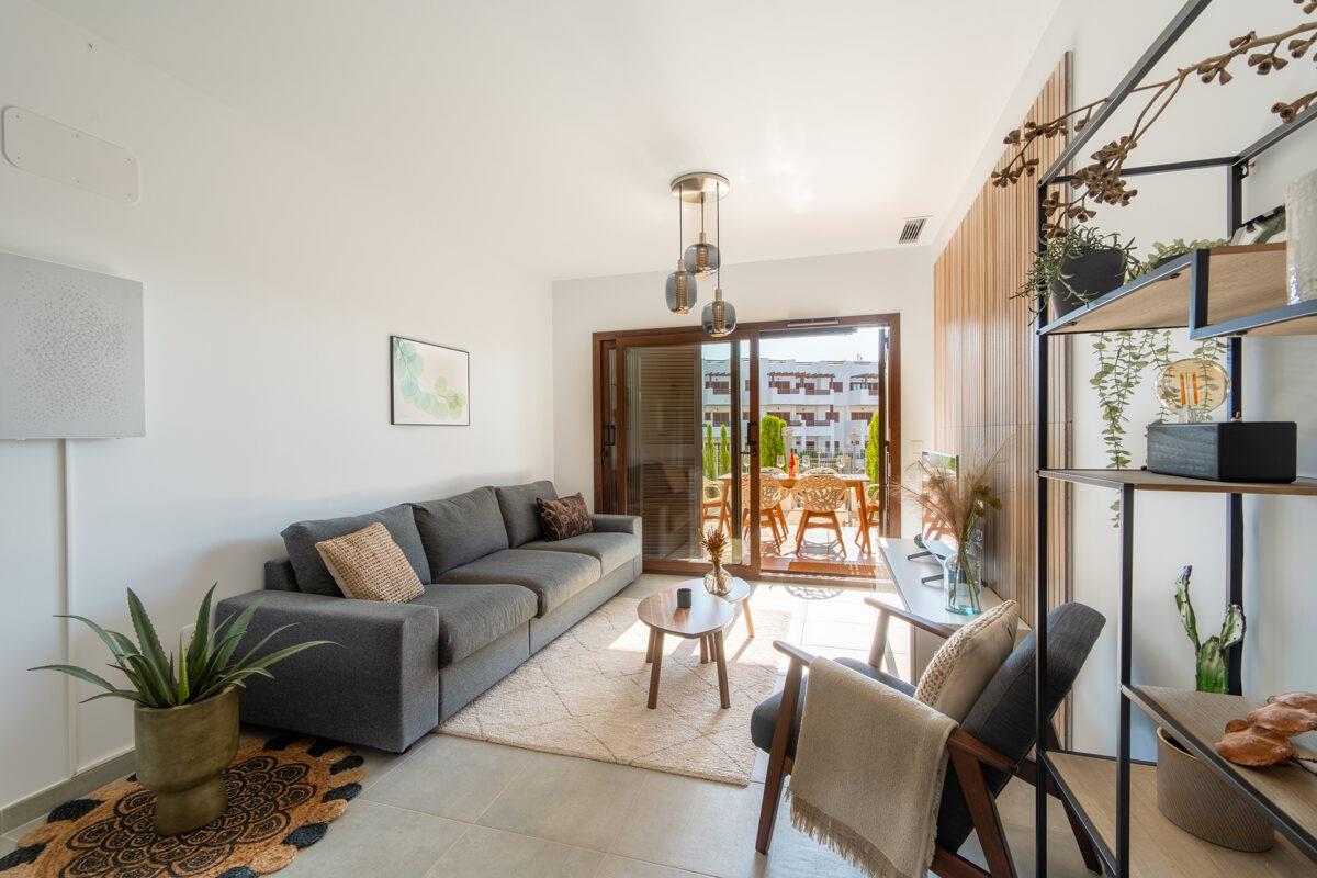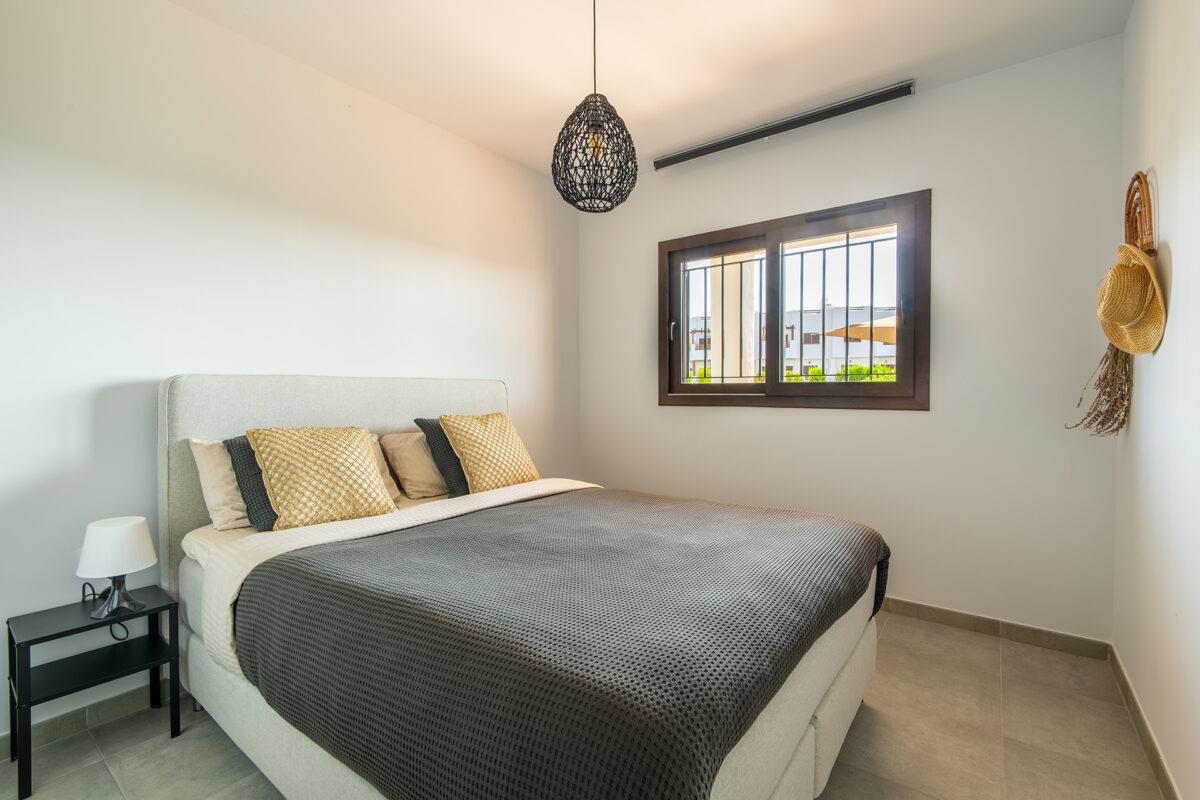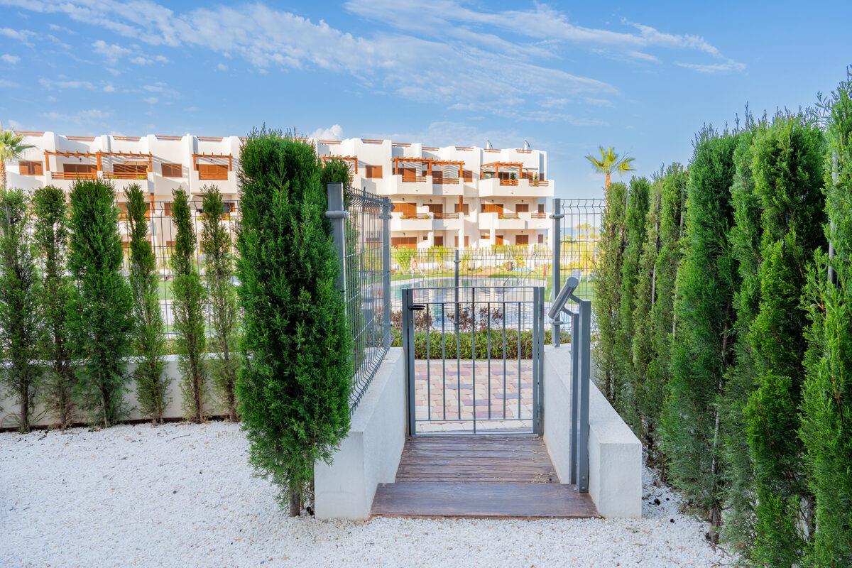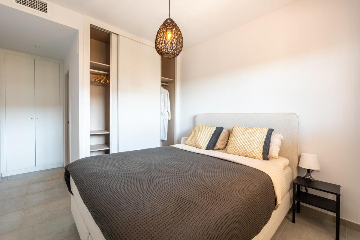 The apartment has 2 bedrooms and 2 bathrooms. The accommodation offers a garden with gravel, a lawned communal garden with trees, and a view of the pool, the garden, and other buildings. Its comfort and the proximity to the beach, shops, sports activities, entertainment, sights, and culture make this a fine apartment to spend a long stay in Spain with family or friends.