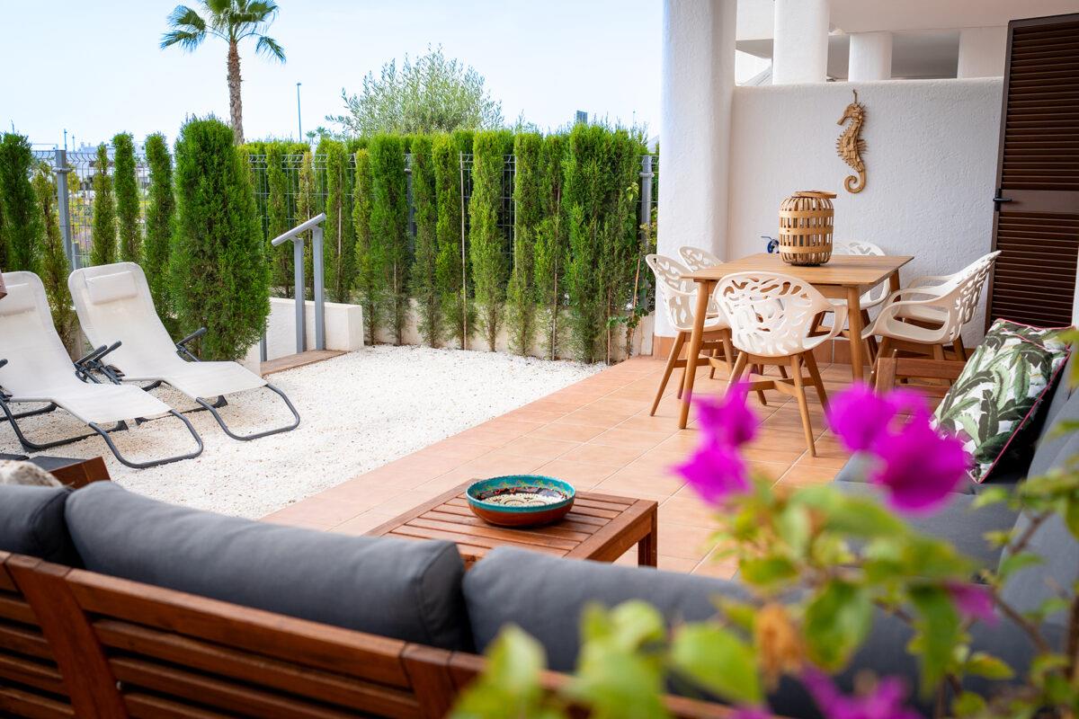 2. Outside: Garden furniture and sun loungers (not always for apartments or houses without a garden).