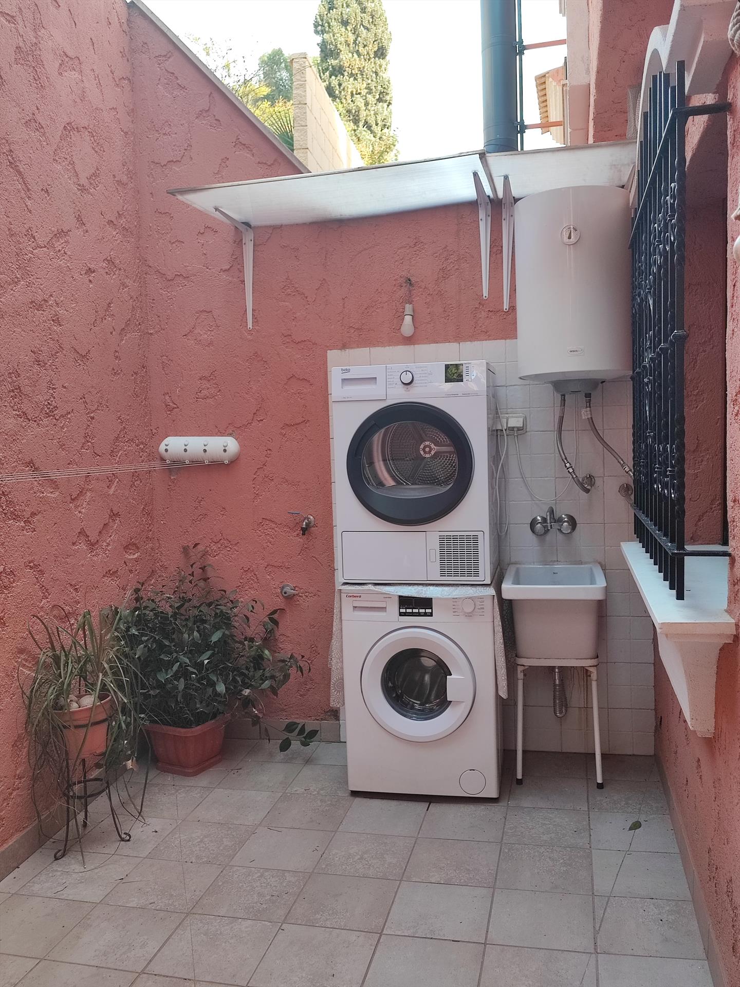In the courtyard you will find the washing machine, dryer, water heater and a sink.